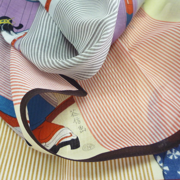 商 品 詳 細 素材 綿100% サイズ 縦約42.5cm 横約42.5cm 特徴 日本製の浮世絵美人画の綿ハンカチです。