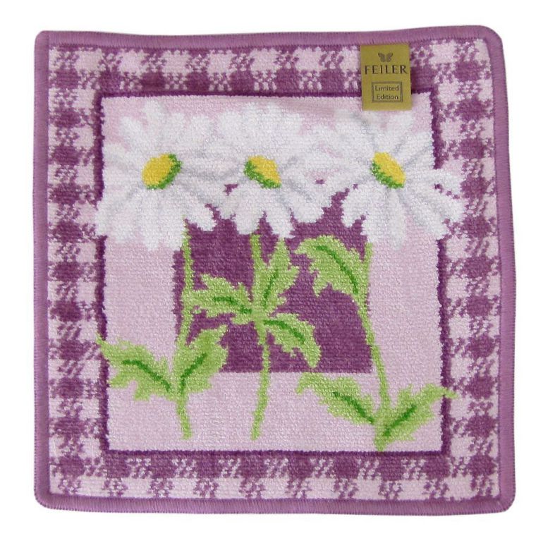【メール便可275円】 【ヨーロッパ限定 日本未発売】 吸水性が非常に高く、やわらかくて丈夫なシュニール織のハンカチ 華やかな柄のフェイラーのハンカチは贈り物にもおすすめです マーガレットの花がデザインされたシンプルなハンカチ [サイズ(約)] 25cm×25cm [カラー] パープル | カラー系統 【パープル】 [素材] 綿100%(シュニール織) [生産国] ドイツ [取扱絵表示] 洗濯機 水温60度以下 洗濯・脱水は普通コースで | 低温でのタンブル乾燥可 ※入荷時期によって商品の仕様が予告なく変更となる場合がございます ※こちらの商品は並行輸入品となります ※ご注意 シュニール織の商品は縮みやすい性質があり、繰り返しのお洗濯で10%程度縮む場合があります ラッピングについてはこちらをご覧ください